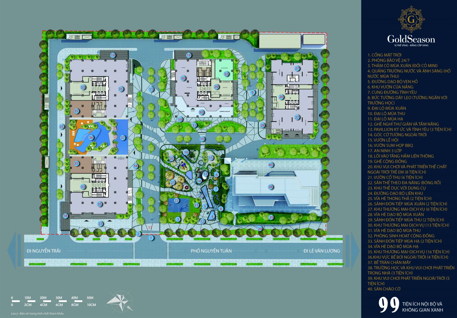 Chung cư Goldseason mang đến cho cư dân một cuộc sống mang phong cách nghỉ dưỡng – Xanh – An Toàn – Tiện nghi và tính cộng đồng cao. Sống tại goldseason cư dân được hưởng tới 99 tiện ích khác nhau, với an ninh 3 lớp khép kín an toàn tuyệt đối, hệ thống quản lý tòa nhà thông minh, hệ thống phòng cháy tự động, đơn vị quản lý tòa nhà chuyên nghiệp.