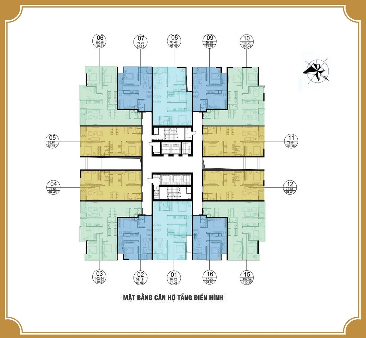 Diện tích căn hộ: từ 65 m2 đến 120 m2.