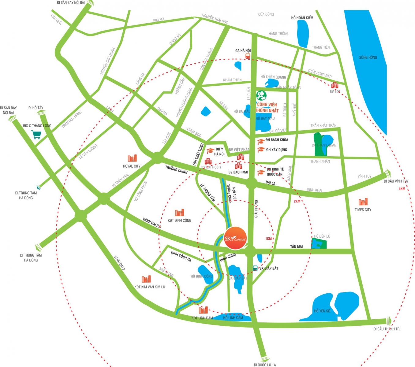 Đồng thời, Chung cư Sky Central 176 Định Công gần các trục đường lớn như Giải Phóng, Định Công, Kim Đồng, Nguyễn Trãi, Lê Trọng Tấn,… và gần các bến xe lớn: Giáp Bát, Nước Ngầm, Ga Hà Nội,… tất cả sẽ giúp cư dân của Sky Central tới các quận huyện trong nội thành và tới các tỉnh xung quanh một cách thuận tiện và an toàn nhất.
