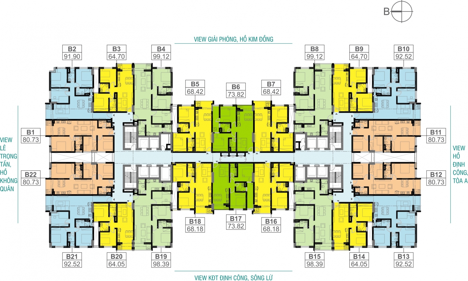 • Tòa B: 396 căn tòa B (18 tầng căn hộ).