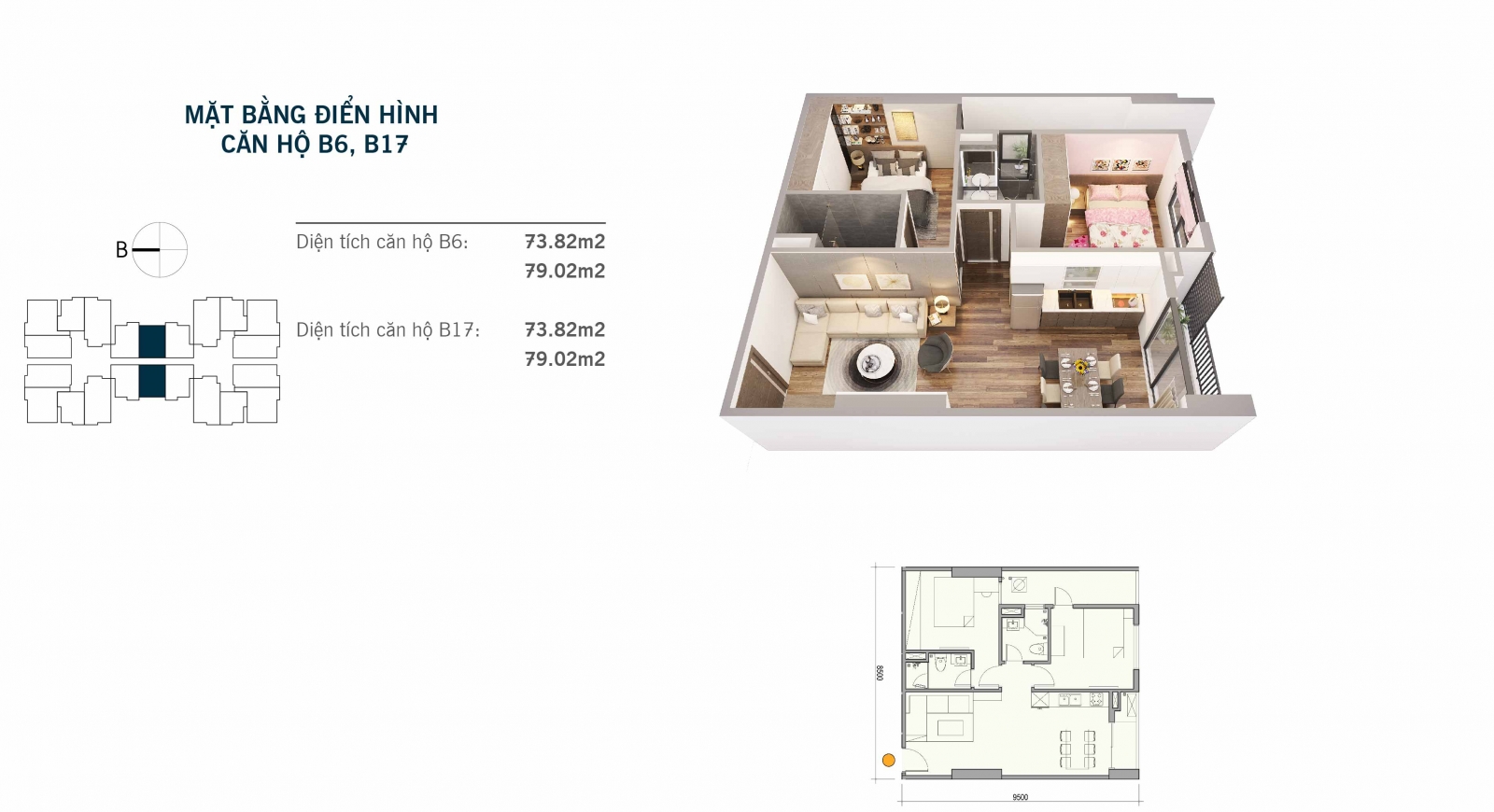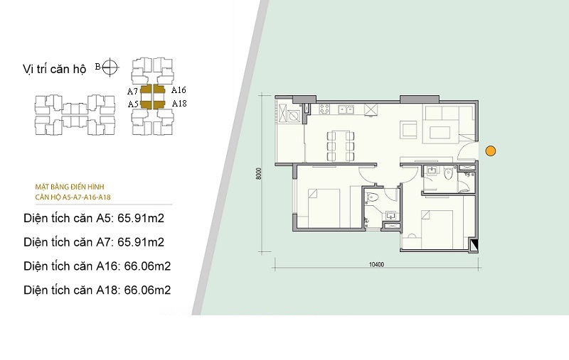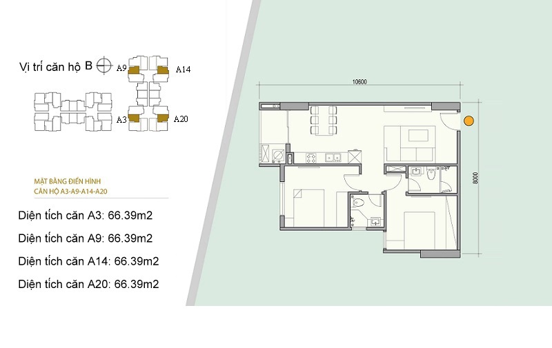 Căn loại 2 PN: 67,1m2 – 80,3m2.
