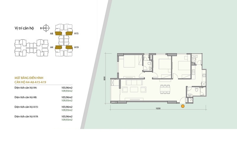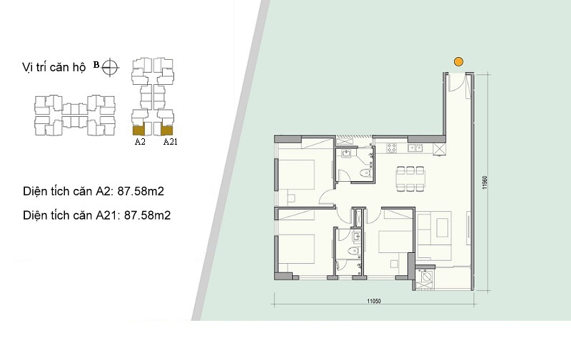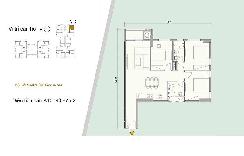 Căn loại 3 P N: 85,8m2 – 105,2m2.