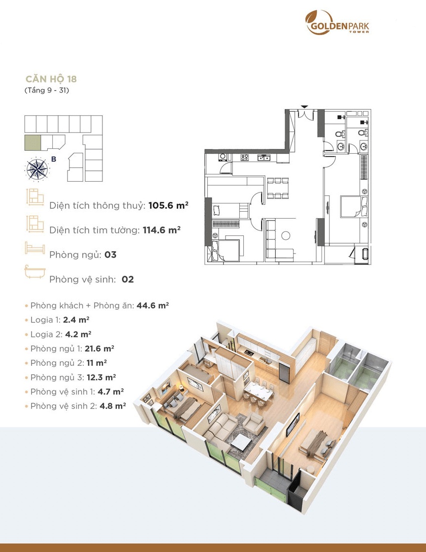 Với những thiết kế hiện đại, áp dụng các tiêu chuẩn kiểu mẫu cho những căn hộ tại Chung cư Golden Park Tower người mua nhà có thể hoàn toàn yên tâm về không gian sống, việc vận dụng các yếu tố phong thuỷ vào trong từng thiết kế với chủ đạo các căn hộ đều lấy cảm hừng “Chạm tay vào Nắng và Gió” kết hợp tinh tế với thiên nhiên, mang thiên nhiên vào từng căn hộ nhưng vẫn giữ được sự sang trọng và đẳng cấp.