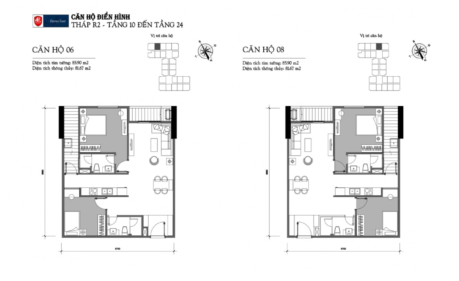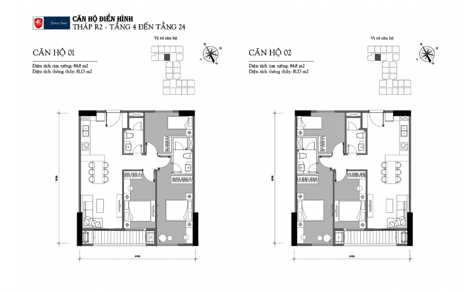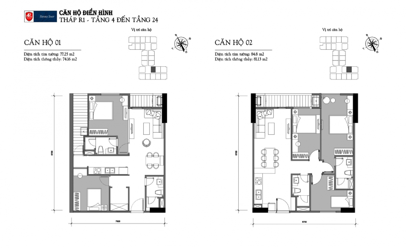 Các căn hộ Chung cư Florence Tower với các diện tích linh hoạt từ 74,88m2 tới 124m2 (Tương ứng căn hộ 2 tới 4 phòng ngủ ) được thiết kế tối ưu và tiết kiệm diện tích.