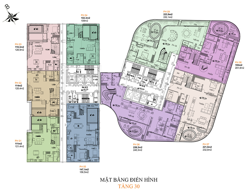 Quy mô: Gồm 2 block cao 30 tầng, 03 tầng hầm.