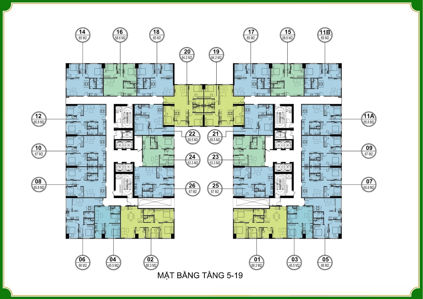 - Số lượng căn hộ/tầng: 16 căn hộ