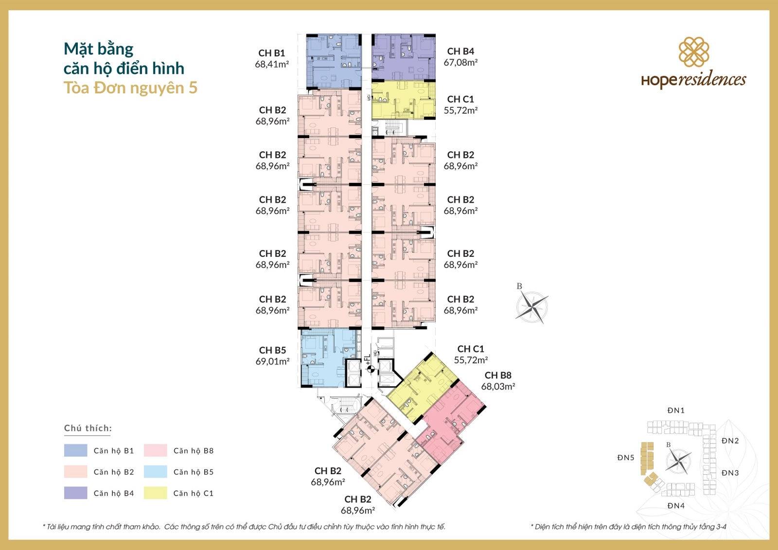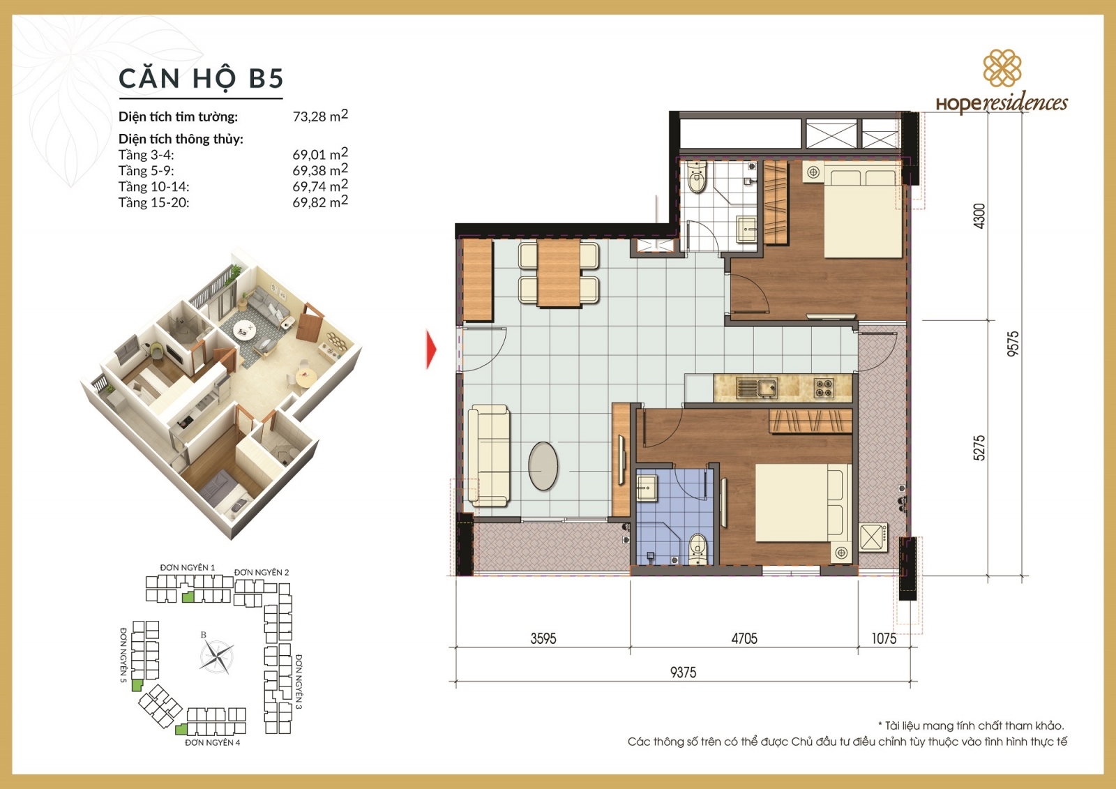 Quy mô: 05 toà căn hộ, 21 tầng nổi, 02 tầng hầm