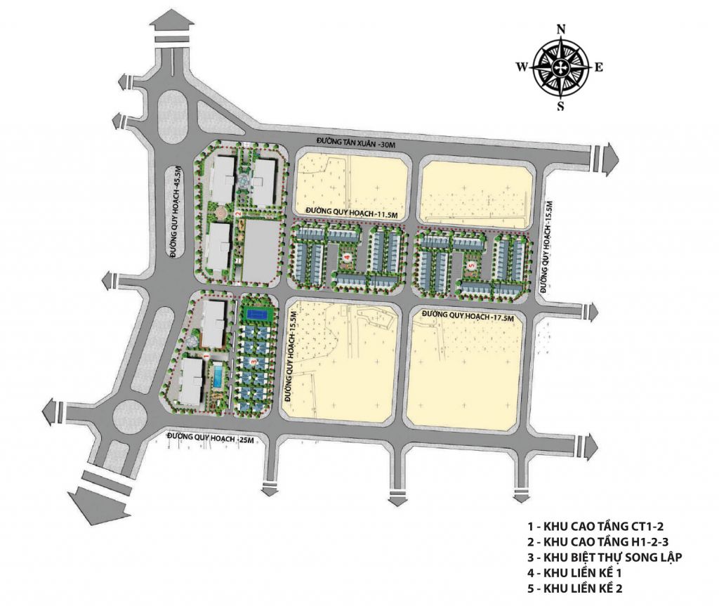 - Quy mô: 5 tòa chung cư cao 26 tầng, 3 tầng hầm