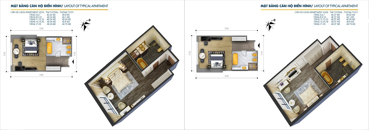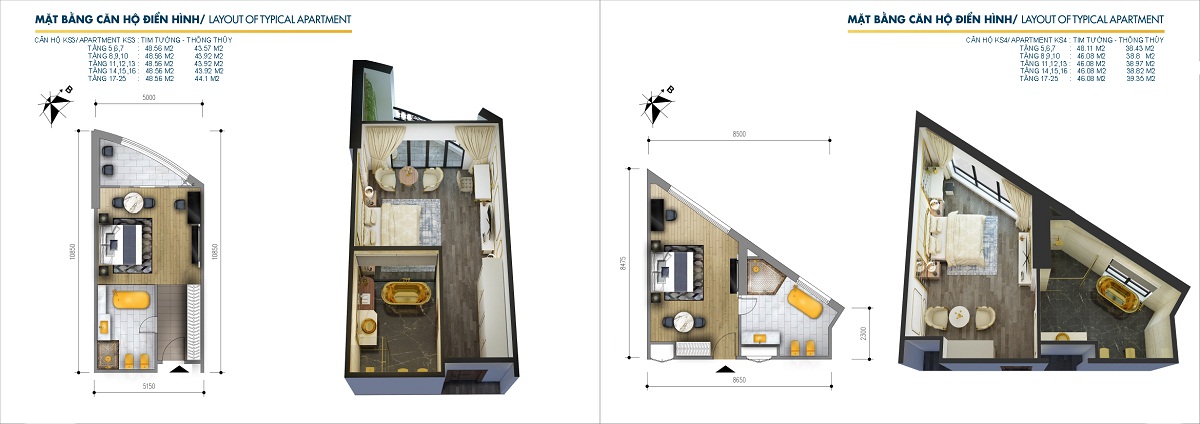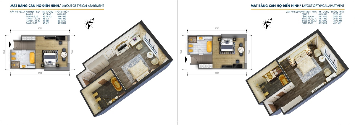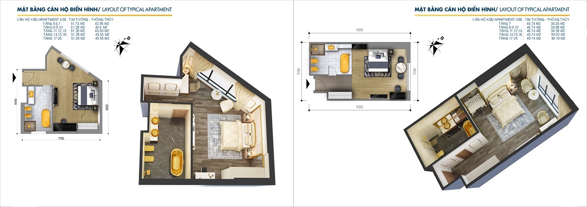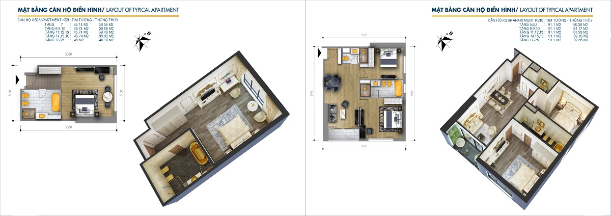 Diện tích 41,5 – 85,5 m2